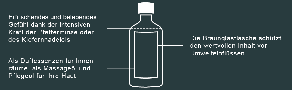 - Zur Erfrischung: Einige Tropfen in Trägeröl mischen, auf Stirn und Schläfen auftragen und sanft einmassieren. Optional ein warmes, feuchtes Tuch auflegen - für ein belebendes Pflegeerlebnis.