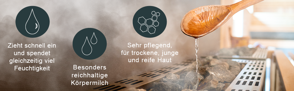 Besonders reichhaltige Körpermilch, die auch extrem trockener , rissiger und spröder Haut Geschmeidigkeit und Zartheit verleiht. Sehr pflegend, für trockene, fettige, junge und reife Haut bestens geeignet. Ideal nach dem Baden, der Sauna und dem Sonnenbaden.