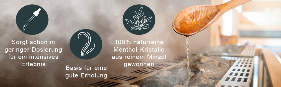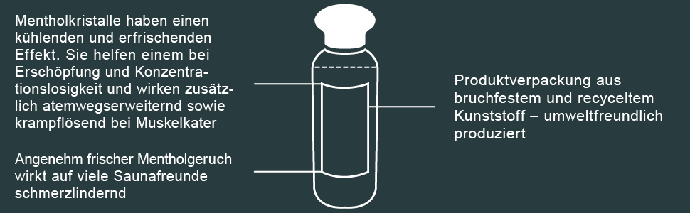 Lagerung: Außerhalb der Sauna aufbewahren – Mentholkristalle können bei Wärme schmelzen.
