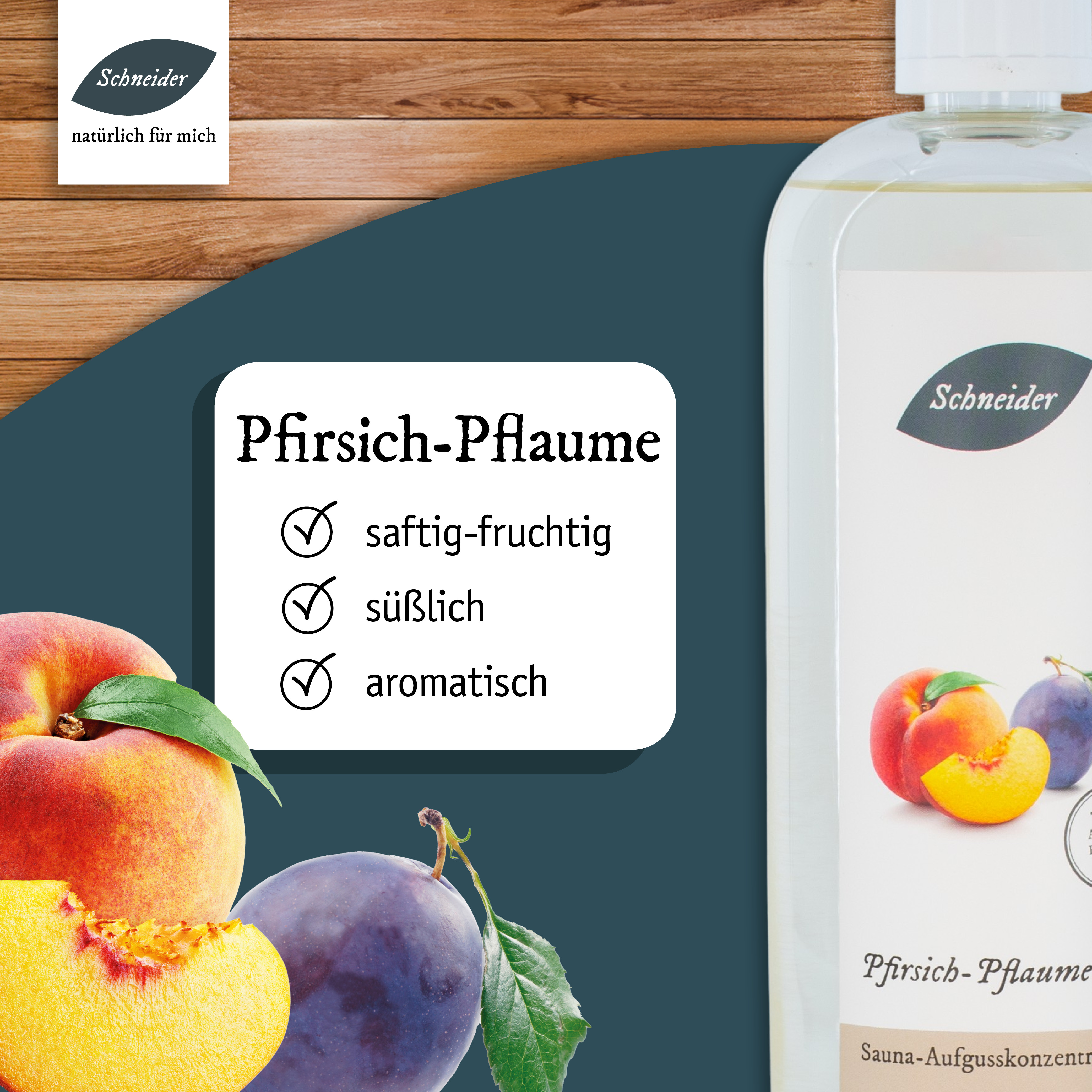 Pfirsich-Pflaume: saftig-fruchtiger Saunaaufguss aus eigener Herstellung mit Pfirsich und Pflaume